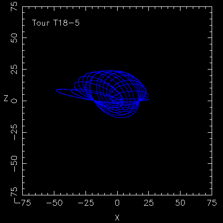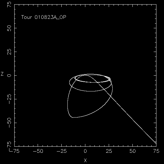| Vista en planta y en perfil de la secuencia de alta inclinación de la Cassini. | |