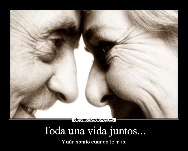 Después de muchos años juntos, de sobrellevarse el uno al otro, de conocerse hasta el punto de poder hablar sin palabras, una simple mirada se expresa de tal manera que, los sonidos de la voz, han dejado de ser necesarios. Ese punto del Amor, en este mundo de hoy, ¿Cuántos lo pueden conquistar? Lo cierto es que, para conseguirlo, el secreto está en el respeto mutuo, en hacer de cada día ese “día de especial”, que no sea un sólo día al año, sino que, durante los 365, le estemos regalando a la persona amada, toda clase de preciosos presentes en forma