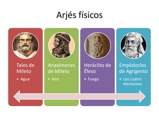 utilizar la lógica y, entre otras muchas cosas, indicó la importancia que tenía el agua para la existencia de la vida. Empédocles nos habló de los elementos y Demócrito del a-tomo o átomo., Arquitas de Tarento (filósofo, soldado y músico), el amigo de Platón y seguidor de Pitágoras, ya se preguntaba: ¿Es el Universo infinito?
